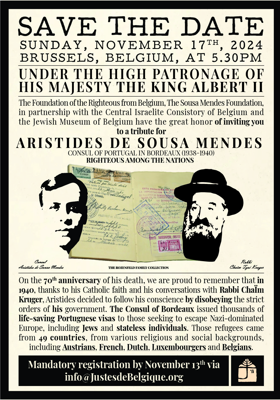 Notre premier événement fut un Hommage national au diplomate portugais Aristides de Sousa Mendes, surnommé le Consul de Bordeaux, organisé à l’occasion du 70ᵉ anniversaire de son décès.
