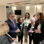 Sophie Wilmès entourée de Madame Konopnicki et de Monsieur Marc D’Aout, dont la maman Isabelle a aidé son père durant ces journées difficiles de préparer les visas qui auront sauvé +/- 30.000 personnes arrivées à Bordeaux de toute l’Europe occupée par les nazis.